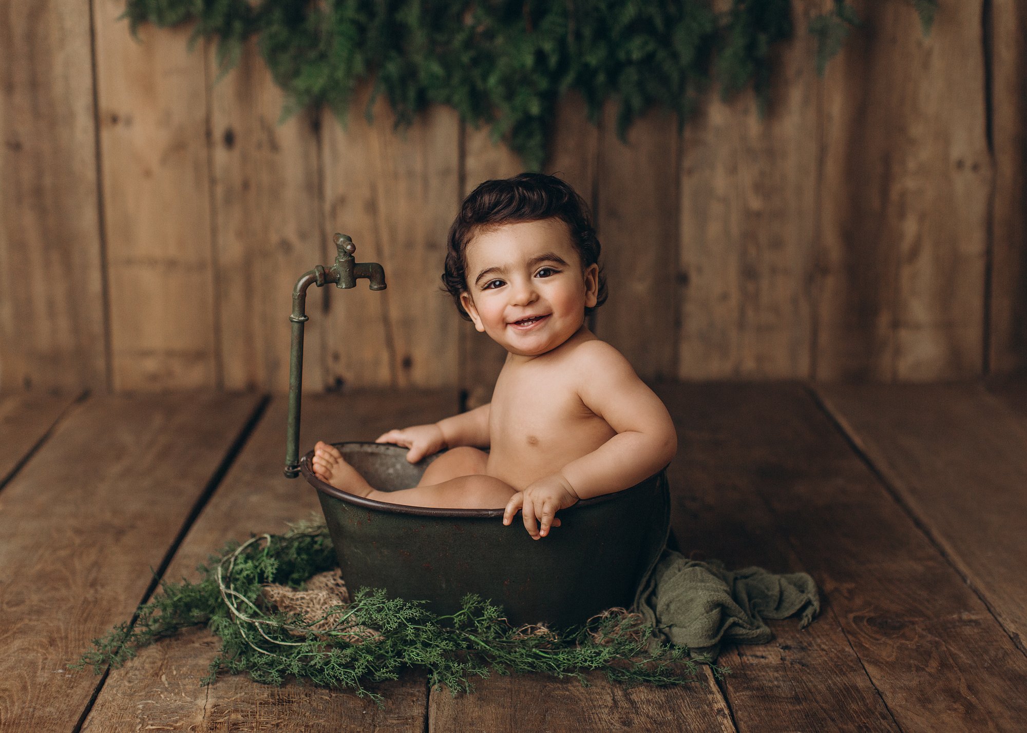 Metal bathtub in green